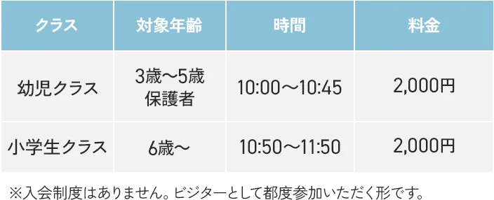 なお、小学生クラスは6歳(年長さん)から参加可能です。